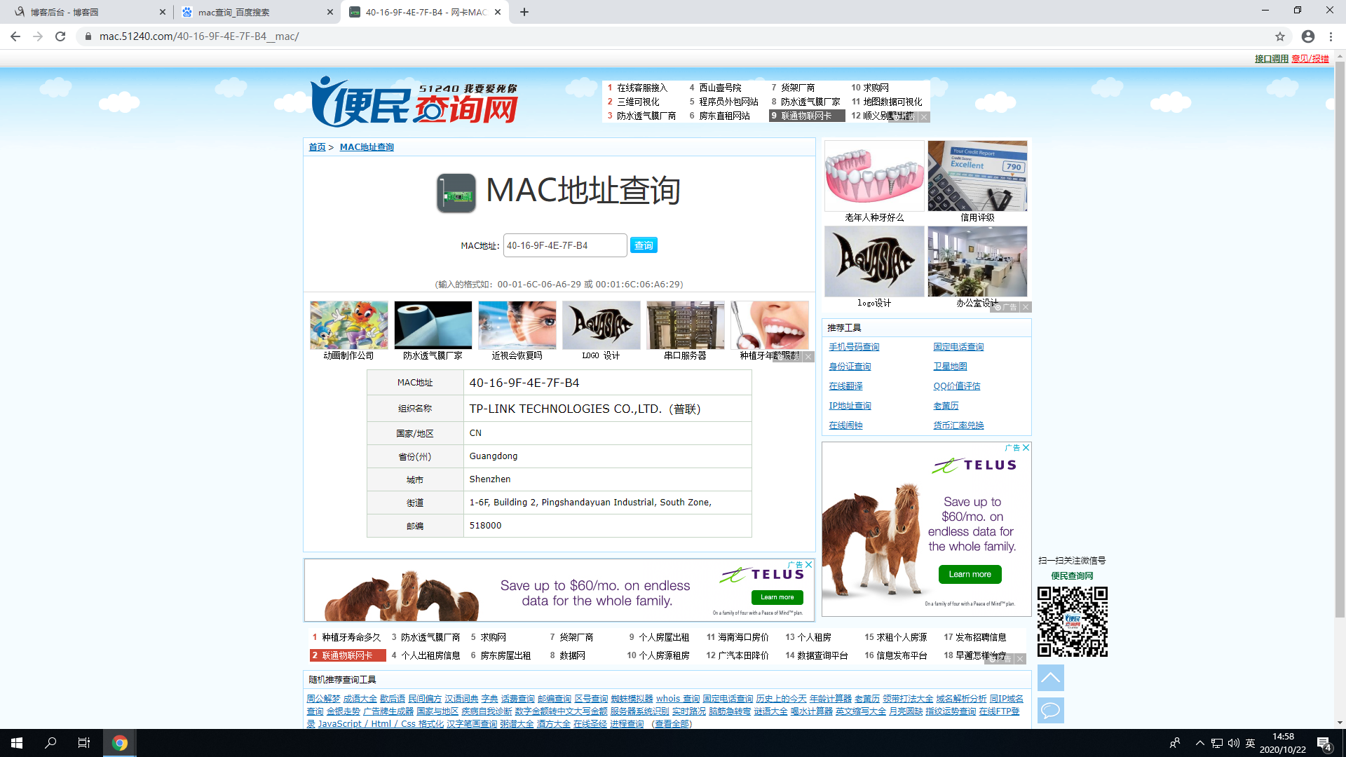 在一个案件中,获取了犯罪嫌疑人的一个MAC地址:40-16-9F-4E-7F-B4,请查询该MAC地址对应的厂商是(附截图)