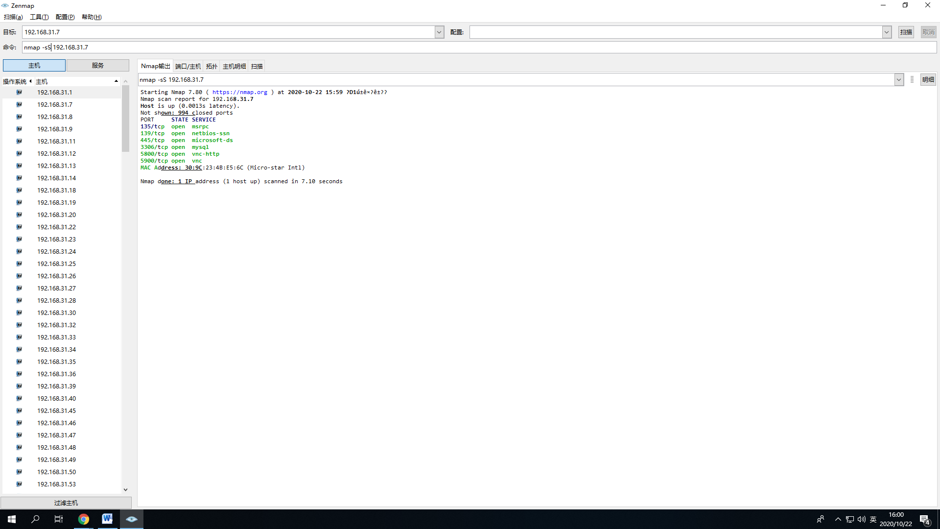 在实验楼上网的局域网内,请扫描出来,哪些机器开启了ftp服务,哪些机器开启了远程桌面连接服务,并附截图证明。
