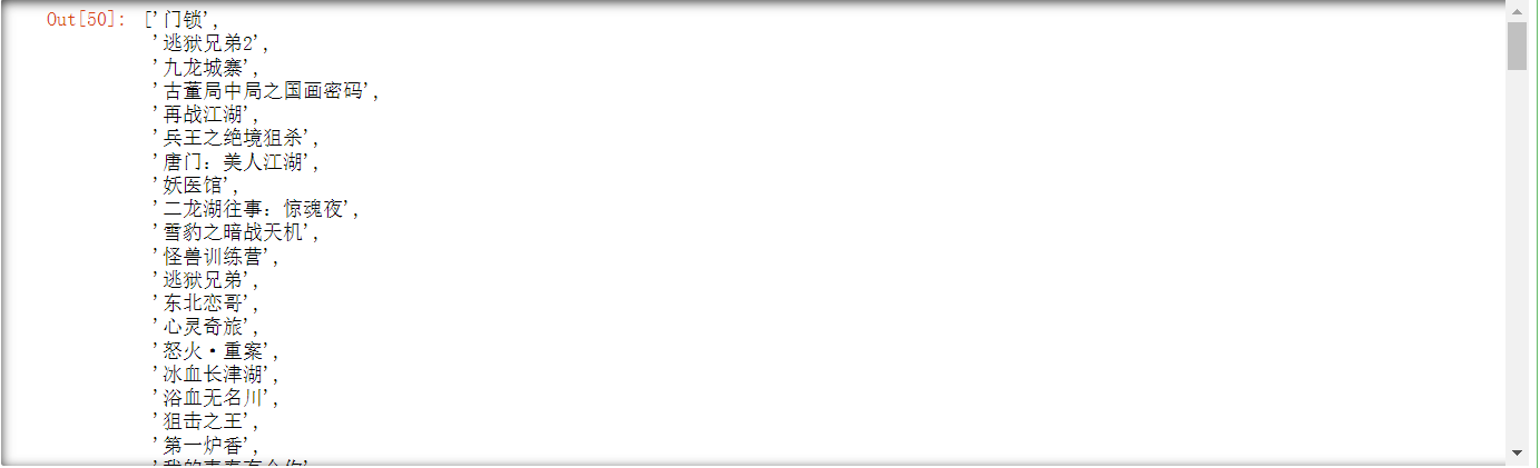 1 ulist=[] 2 3 for p in soup.find_all("p","site-piclist_info_title"): 4 ulist.append(p.a.string) 5 ulist