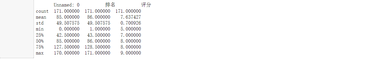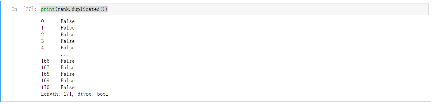 1 #检查是否有空值 2 print(rank['评分'].isnull().value_counts())
