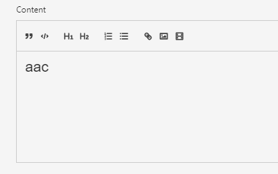 <quill-editor [modules]="quillConfig" [style]="{height: '200px'}" [(ngModel)]="Content"></quill-editor> quillConfig = { toolbar: [ //['bold', 'italic', 'underline', 'strike'], // toggled buttons ['blockquote', 'code-block'], [{ 'header': 1 }, { 'header': 2 }], // custom button values [{ 'list': 'ordered' }, { 'list': 'bullet' }], //[{ 'script': 'sub'}, { 'script': 'super' }], // superscript/subscript //[{ 'indent': '-1'}, { 'indent': '+1' }], // outdent/indent //[{ 'direction': 'rtl' }], // text directio //[{ 'size': ['small', false, 'large', 'huge'] }], // custom dropdown //[{ 'header': [1, 2, 3, 4, 5, 6, false] }], //[{ 'color': [] }, { 'background': [] }], // dropdown with defaults from theme //[{ 'font': [] }], //[{ 'align': [] }], //['clean'], // remove formatting button ['link', 'image', 'video'] // link and image, video ] };