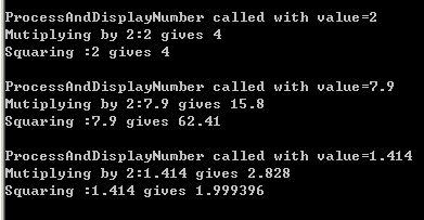 Console.WriteLine("ProcessAndDisplayNumber called with value={0}", value);