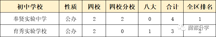 奉贤区只有2所初中,为奉贤实验和育秀实验学校。