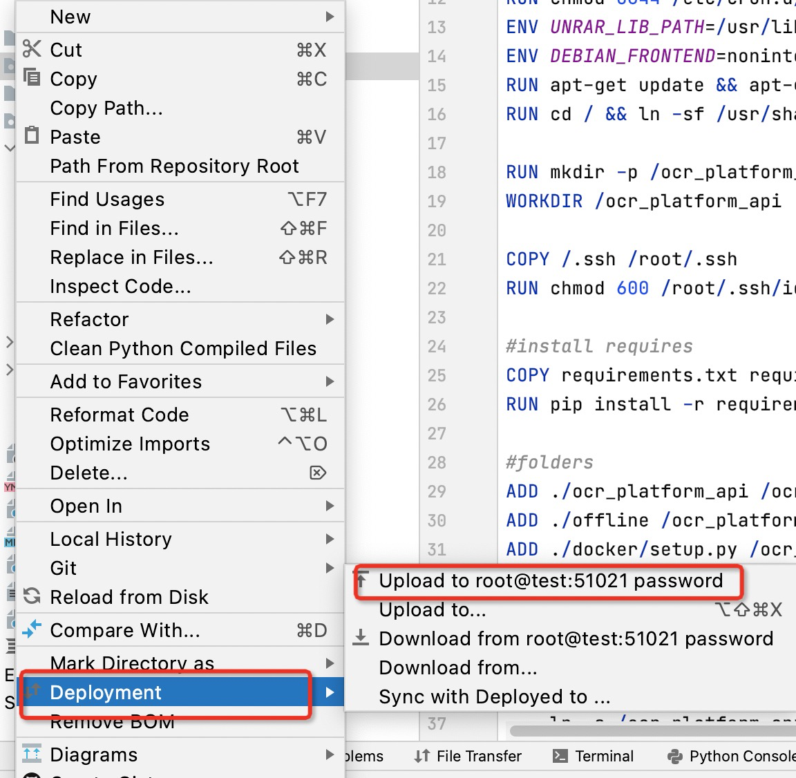 上传代码: 在你主要的代码的文件上右键Deployment选择upload to xxxx..