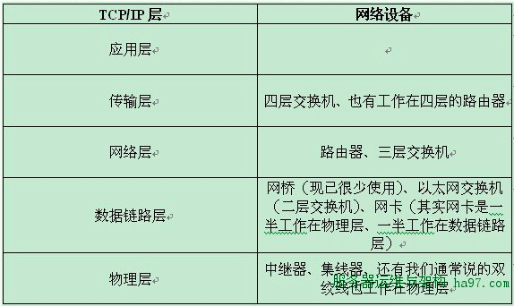 数据链路层:网桥(现已很少使用)、以太网交换机(二层交换机)、网卡(其实网卡是一半工作在物理层、一半工作在数据链路层)