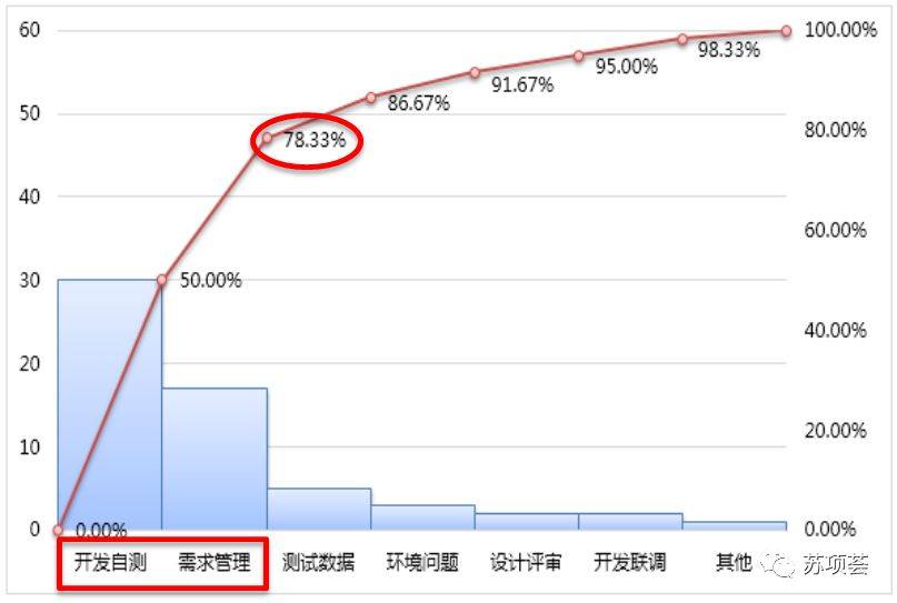 可以借助亲和图、帕累托图、鱼骨图等质量工具进行根因分析。下图是针对某系统的问题亲和后绘制的一个帕累托图样例: