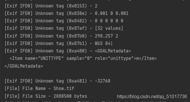 这个运行结果是jpg转换成tiff的读取结果。但转换过后元数据会有所丢失。