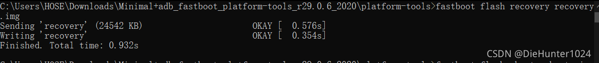 完事之后直接进入recovery:fastboot reboot recovery