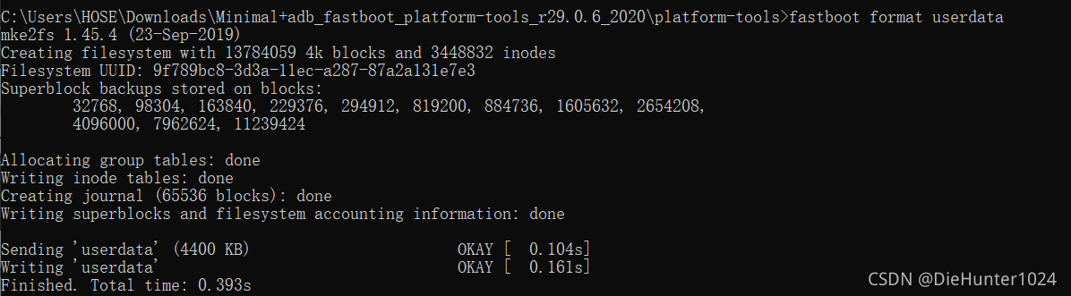 fastboot format userdata:清除用户数据