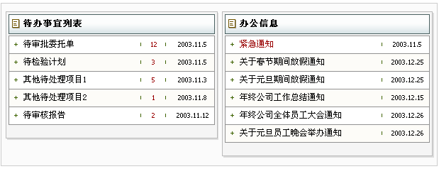 主任务通知区域 通知用户系统业务流程中的待办事宜;通知用户办公系统相关信息。
