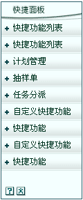 用户快捷面板 为了能方便快捷的访问系统功能,避免每次访问树形菜单较深级次的繁琐*作,用户可将通过导航栏中的收藏按钮,将当前页面收藏到该面板中;该面板出现在所有业务页面,用户可以随时访问自己定义的功能页面。该导航在首页以面板形式出现,在其他页面以下拉菜单形式出现。