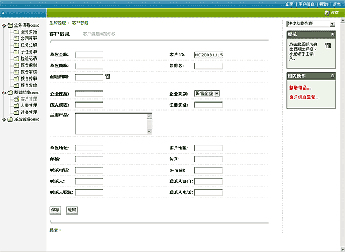 Demo是详细设计阶段的重要成果之一,在对系统进行详细的分析设计之后,开发出界面Demo原型,主要作用是提供给合作客户,在基本功能、系统组成和易用性上进行测试。 本系统的Demo主要包括界面的设计制作,和部分客户端表现层脚本的开发。为了在后面的实际业务开发中尽可能获得重用,Demo的制作在页面规范、CSS样式定义和JS脚本编写方面都严格遵循了系统开发规范,并在以后的代码编写工作中严格执行。 本系统整个Demo包括大约50个页面,耗时月3周。 在后续的开发过程中,仍然要严格控制整个开发过程,保证整个系统界面的统一,并随时维护更新系统界面的设计。 8.结语 文章太长了……需要对以前很多东西进行回顾,实在很困难。很多细节,包括很多设计、技术上的东西,都已经记忆不清了,文章也显得有些紊乱。