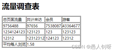 <h1>流量调查表</h1>