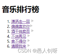 <h1>音乐排行榜</h1>