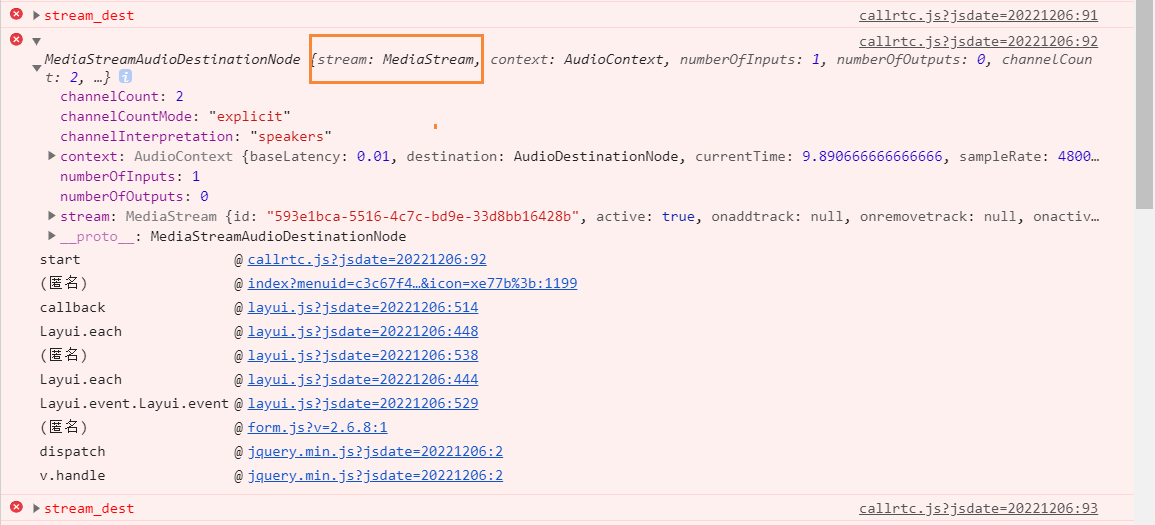 获取元素的MediaStream方法添加逻辑判断--添加作用原因就是页面在不刷新情况下不会重复生成新的【关联音频流stream_dest的对象】和【音源track】