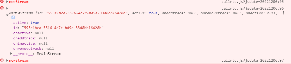 所以修改之前代码,需要将上面的(track和stream_dest要声明为全局变量并且加上逻辑判断,页面没有刷新情况下只会在第一次给其赋值