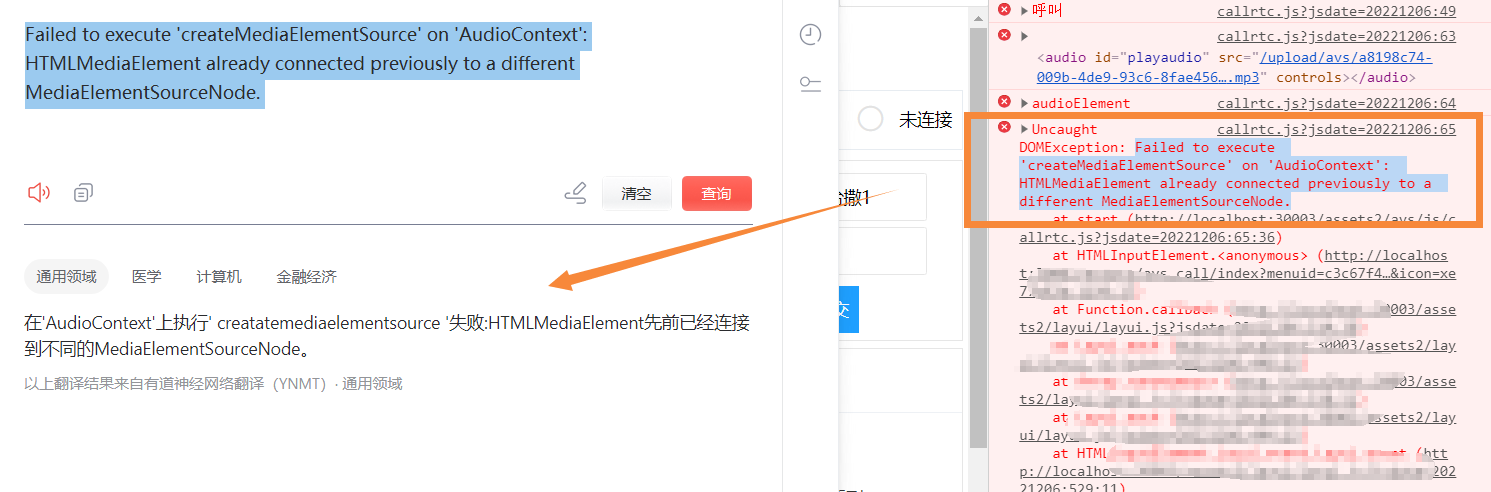 经翻译可以看出HTMLMediaElement之前已经连接到一个不同的MediaElementSourceNode。