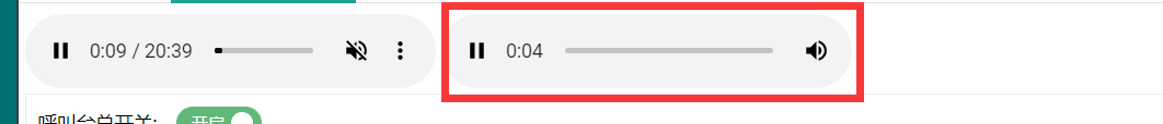 //通过auido标签获取该媒体音源--创建一个接口用来关联HTMLMediaElement 这可以用来播放和处理来自video或audio元素的音频 const track = audioContext.createMediaElementSource(audioElement); //获取本地audio的MediaStream音频 var stream_dest = audioContext.createMediaStreamDestination(); track.connect(stream_dest); //获取测试audio var playaudio1 = document.querySelector('audio#playaudio1'); //设置赋值 playaudio1.srcObject = stream_dest.stream;