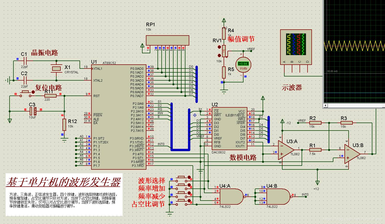 基于单片机的多种波形发生器设计-毕设课设protues仿真