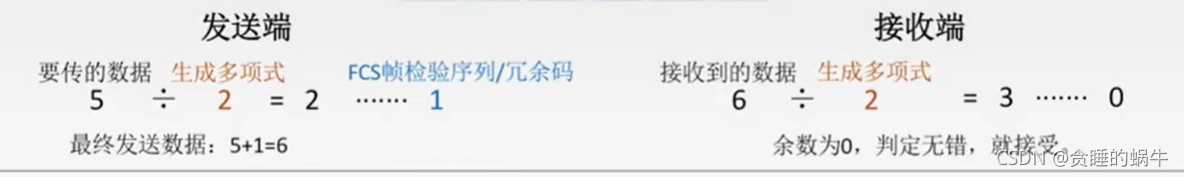 接收方将收到的数据除以同样的除数,然后检查得到的余数,如果余数为0那么就确认接受,否则将会丢弃这个帧