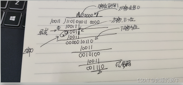 2、数据加0后除以多项式,余数为冗余码