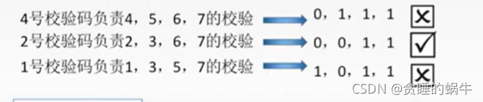 同样2号校验码负责2,3,6,7 那么2号校验码为0
