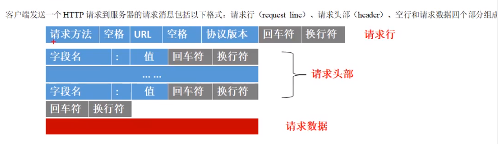 在请求头部完成后 回车空一行 到达请求数据 请求数据不是必须的,如果客户端请求服务器时没有数据也是可以的,对于get一般没有数据,对于post会有请求数据的