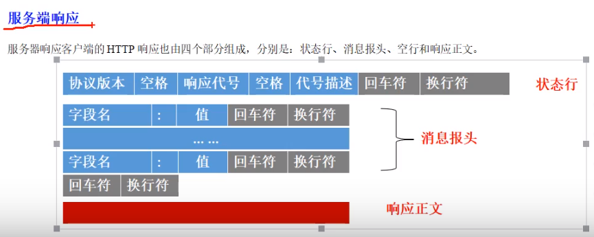进行响应的时候 第一行为状态行 后几行是消息报文,然后再用一行隔开 到达响应正文,响应正文就是页面的代码