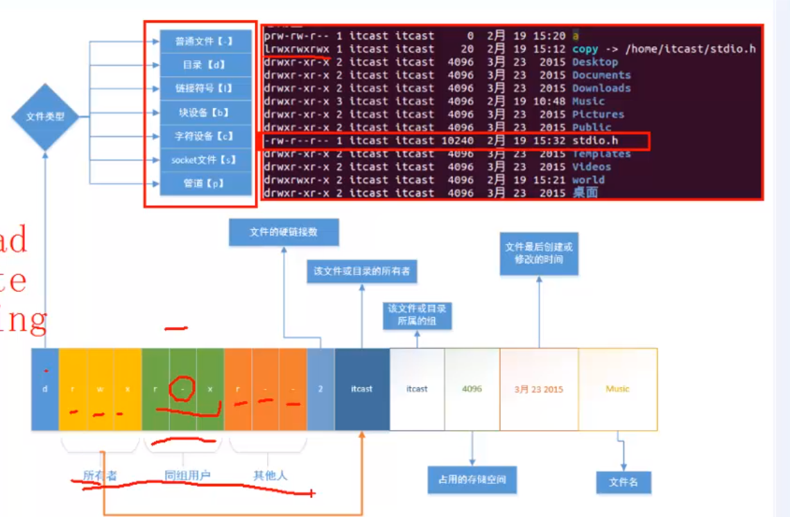 - ls -l查看文件的各种属性
