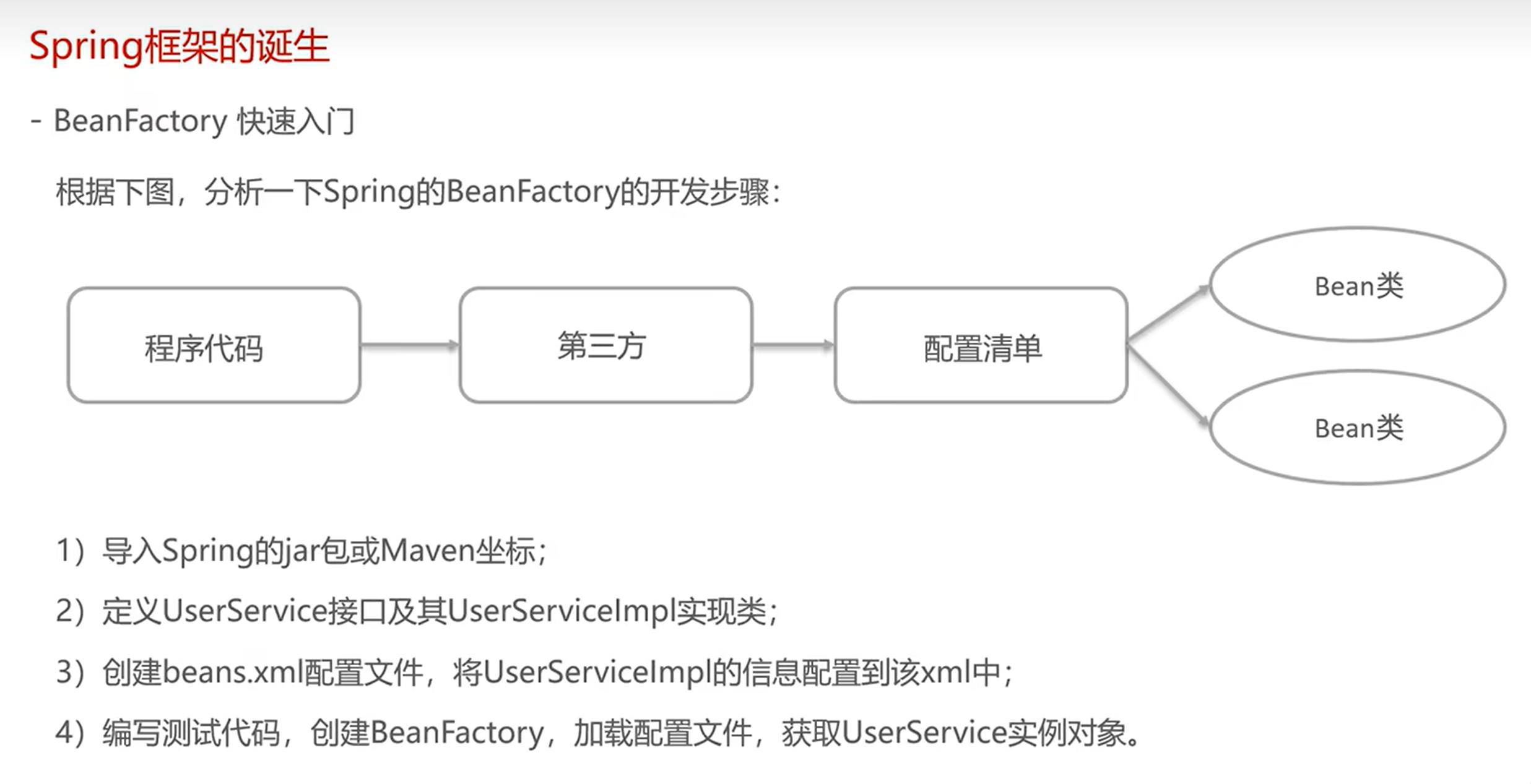 第一步体现的是“第三方”;第二步体现的是Bean类;第三步是配置清单;第四步是程序代码