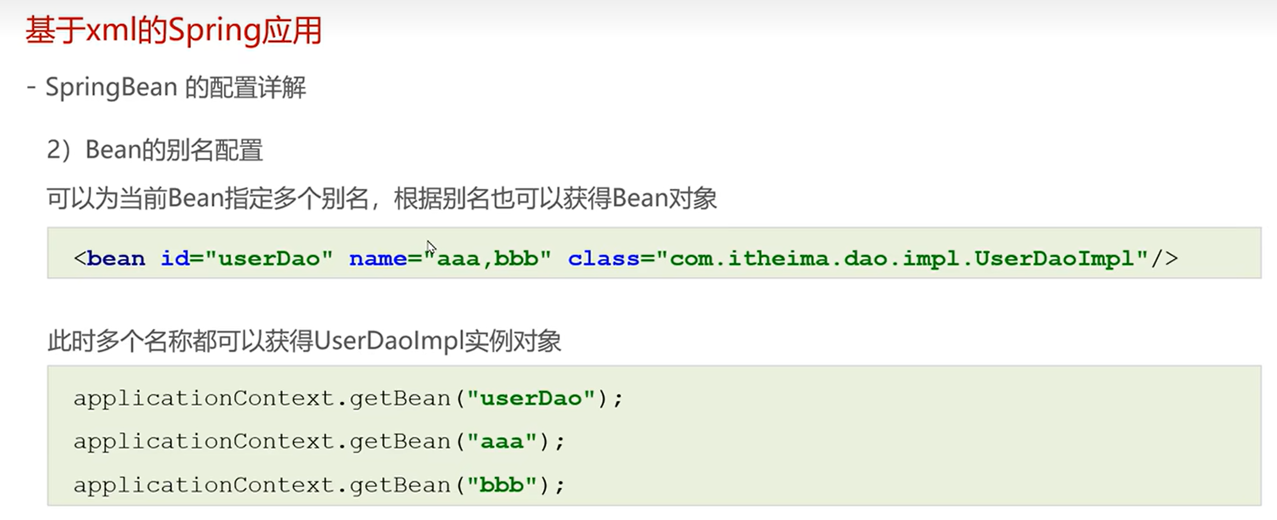 <bean id="userDao2" factory-bean="MyBeanFactory1" factory-method="userDao"></bean>