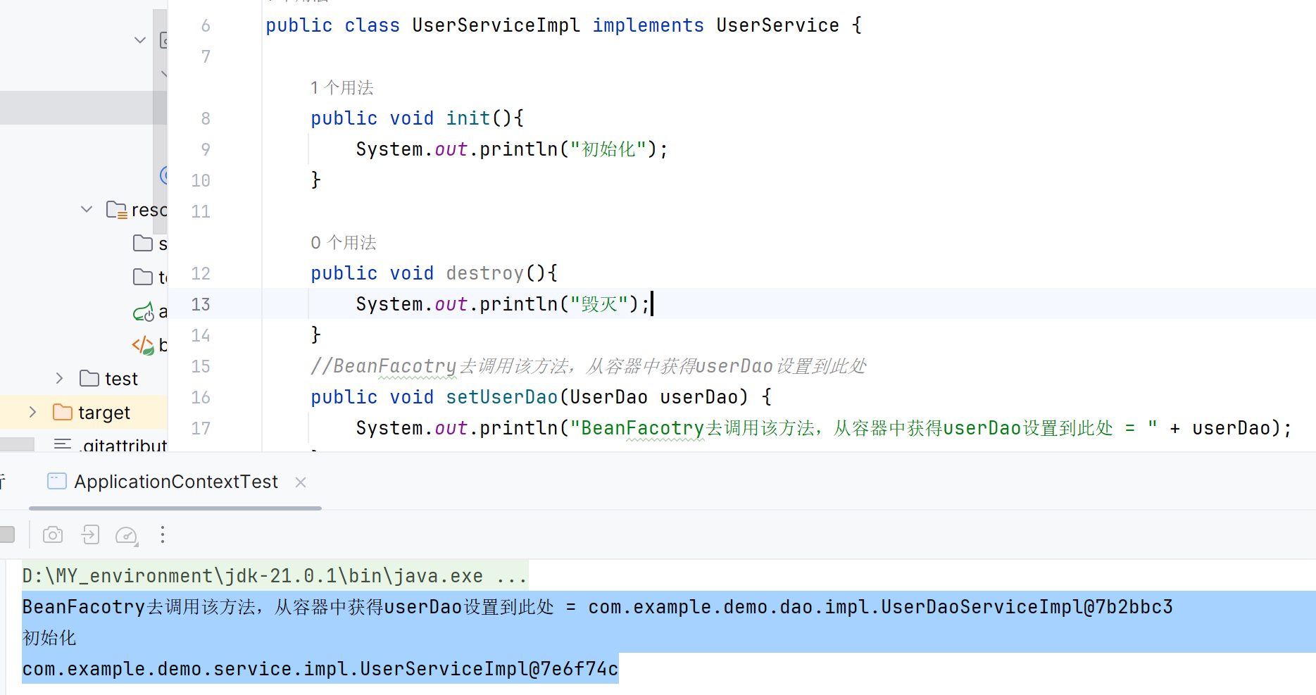 <bean id="userService" class="com.example.demo.service.impl.UserServiceImpl" init-method="init">