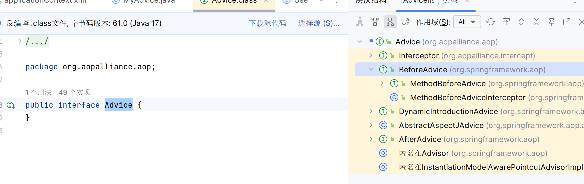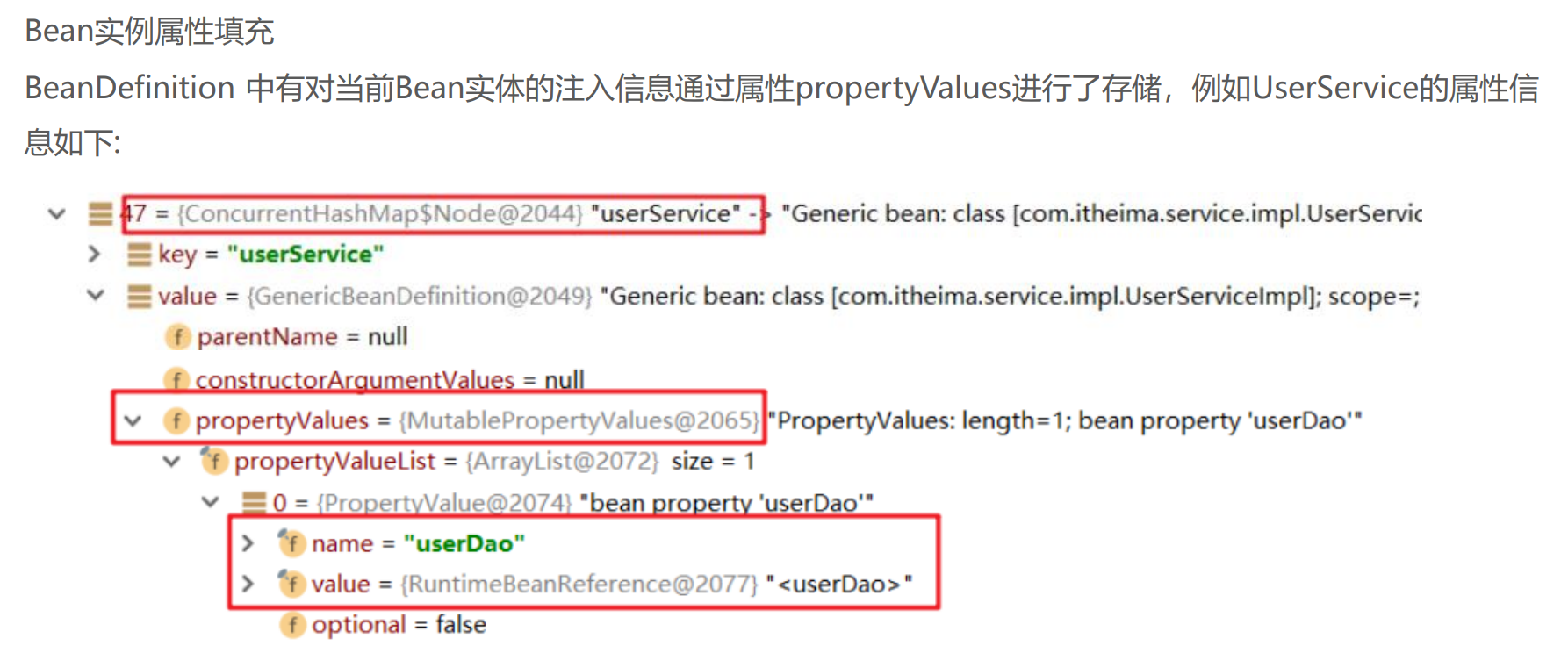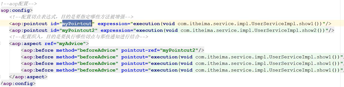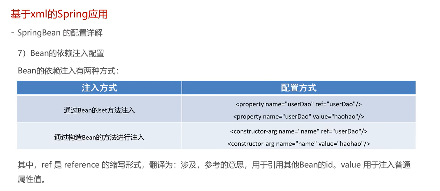 ①<property name="userDao" ref="userDao"></property>中对于name的取值,是看UserServiceImpl中setXxx中的Xxx,并且要小写变成xxx