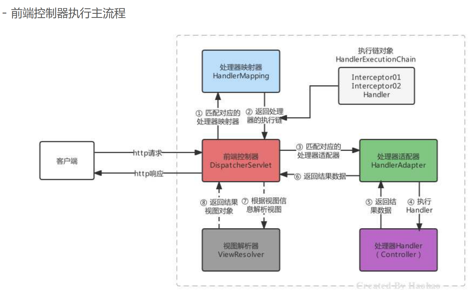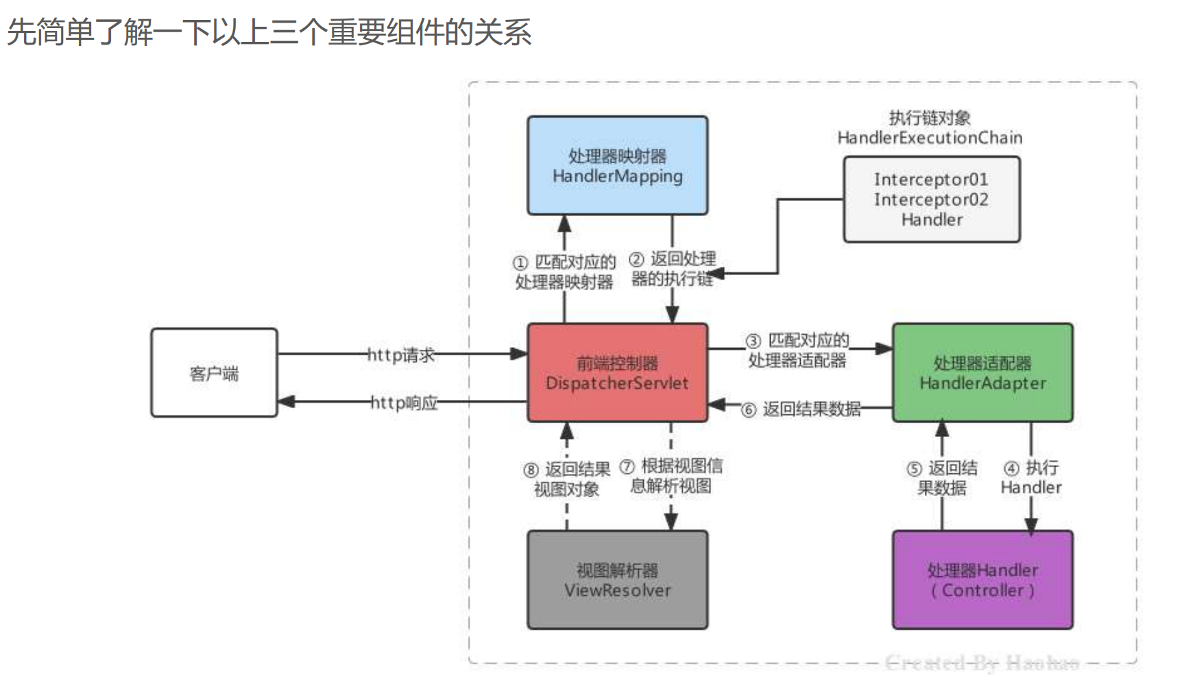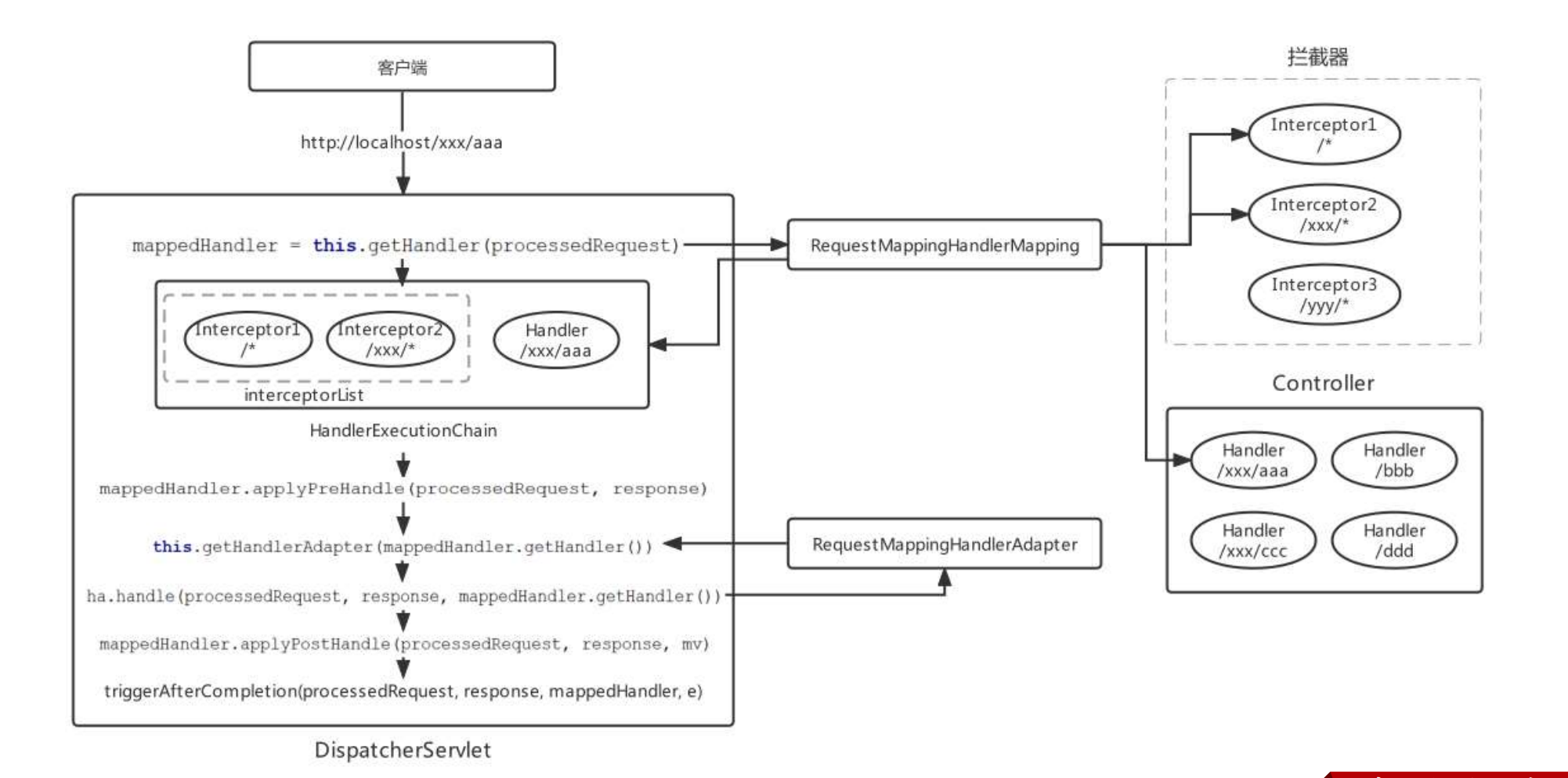 //视图处理、拦截器最终方法调用、异常处理都在该方法内