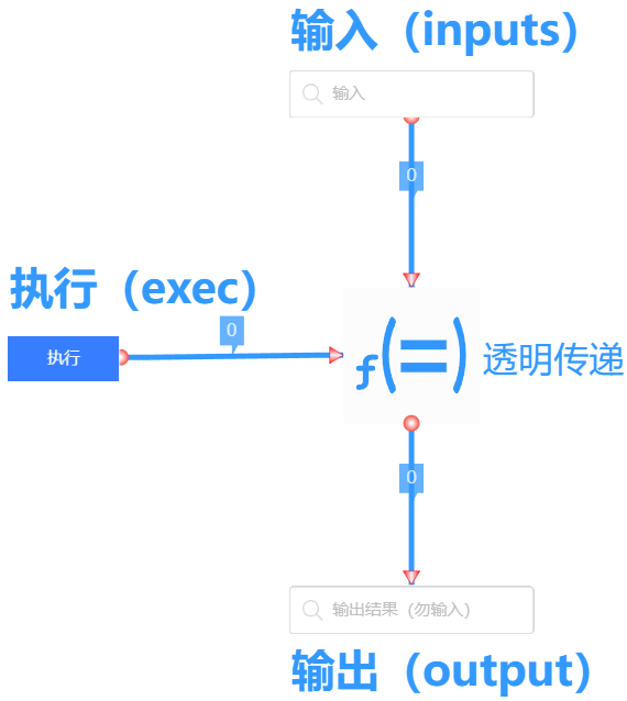 输入对应传参,输出对应返回,执行对应调用。输入和执行等都可以连线操作,输出能对外连线传出。输出可以作为另一个输入,相当于连续调用。