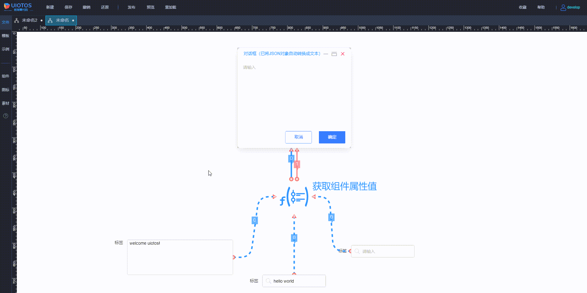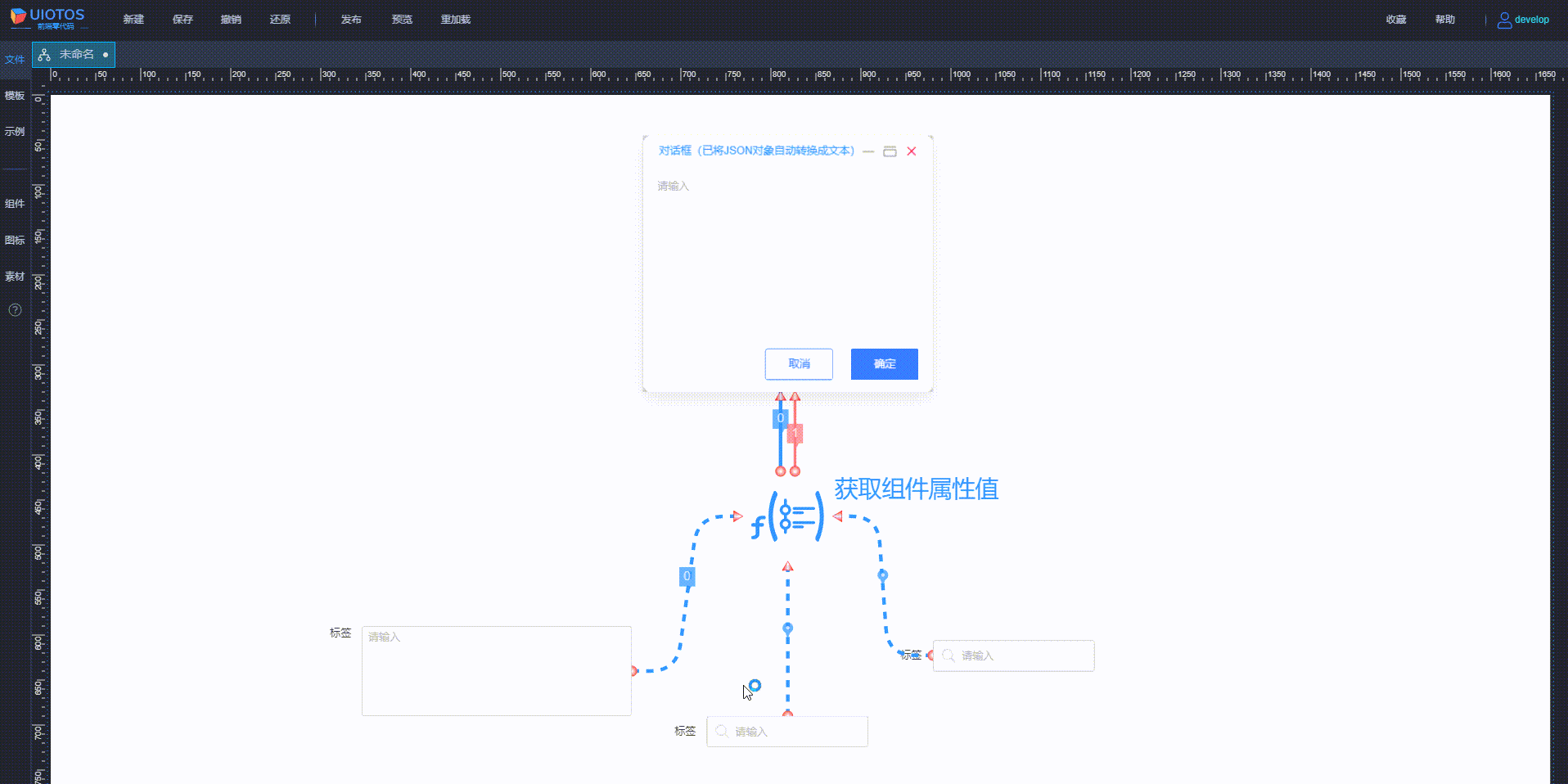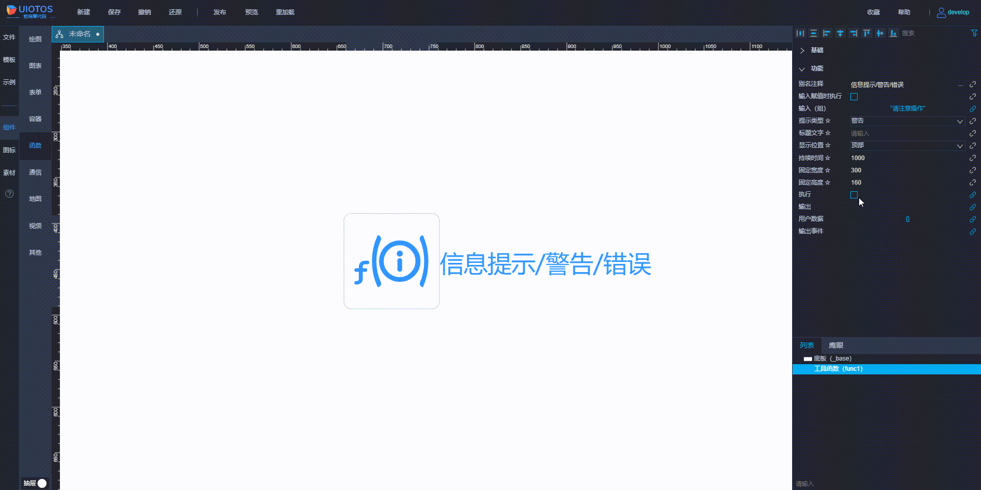 函数组件在使用时,编辑状态下可见,运行时不可见,通常与界面类组件配合,如下所示: