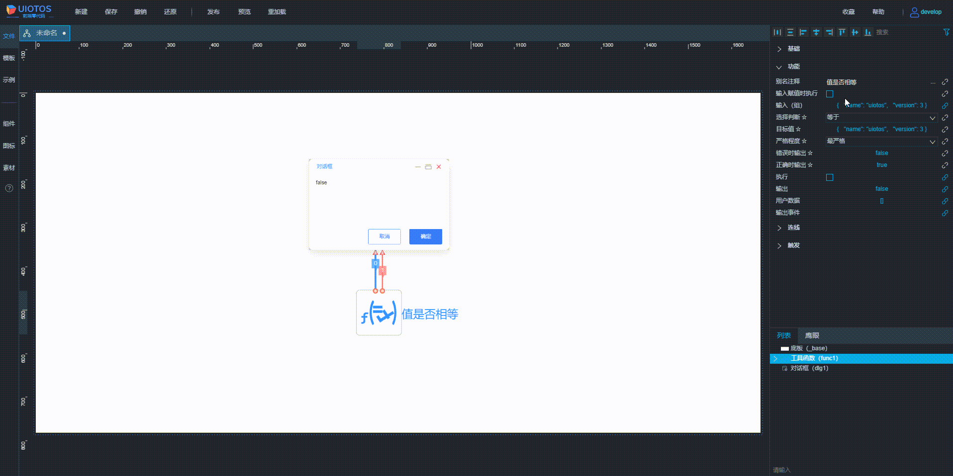 操作成功或失败,自动弹窗提示。也可以通过函数输出对外连线操作,自定义提示。