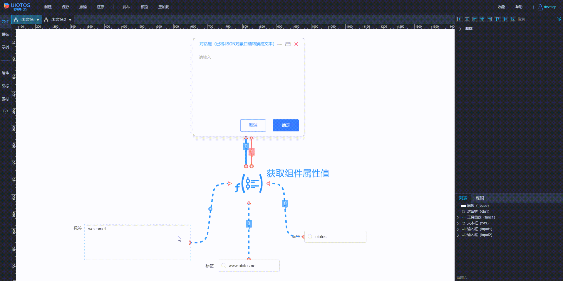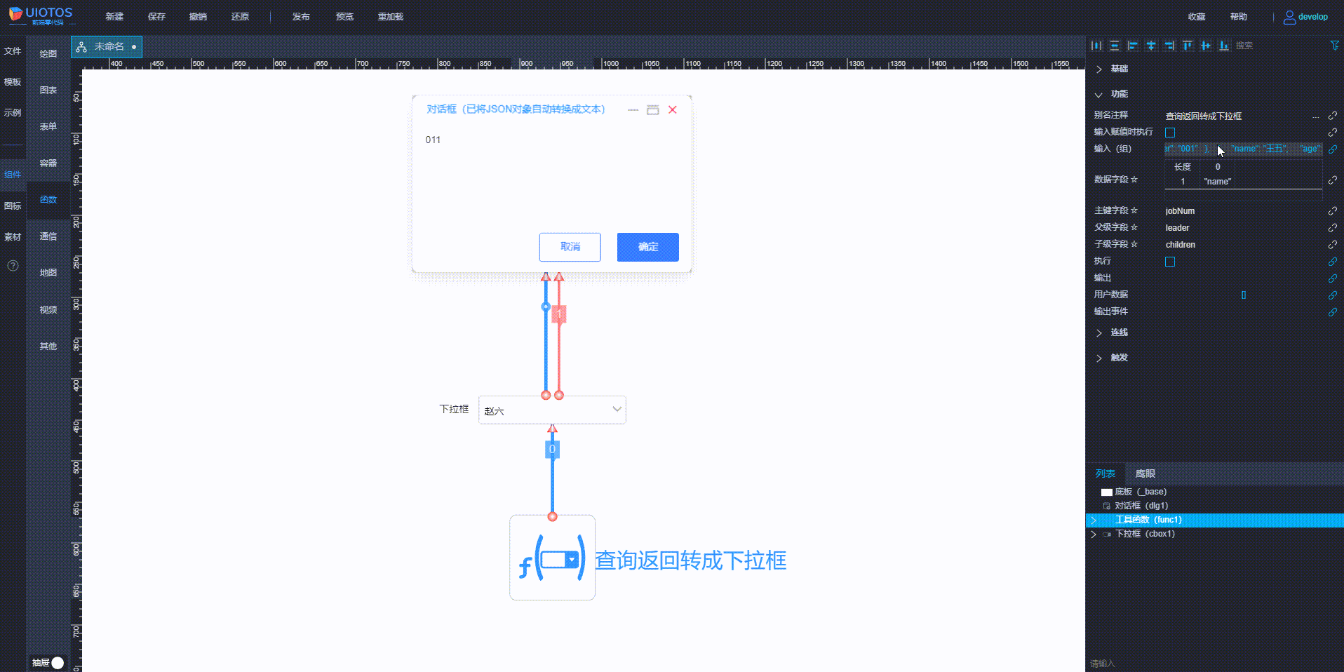 工具函数 + UI组件 + 连线,可用形成工作流、规则链。