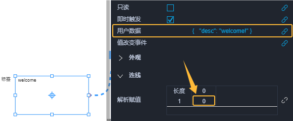 - 连线赋值解析,能提取当前行数据的点击按钮,但无法提供条件判断。