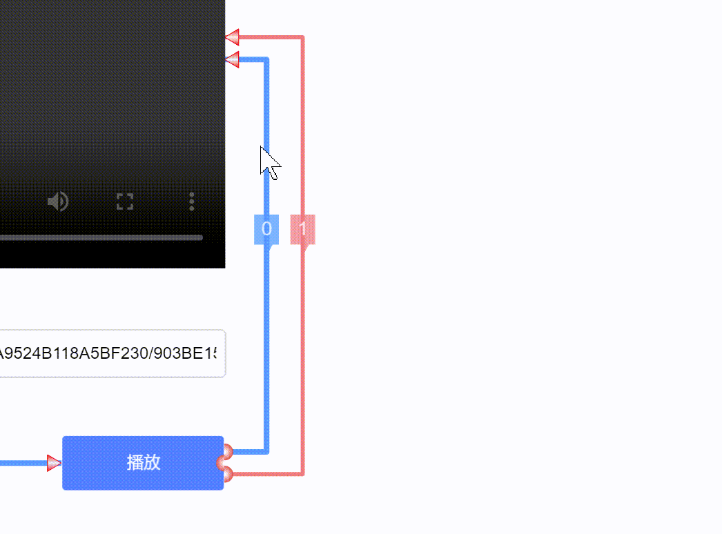 按钮点击,触发0-1取反,数值作为索引给下一步。- “播放”、“暂停”数组文字,按照索引,取其一给按钮。