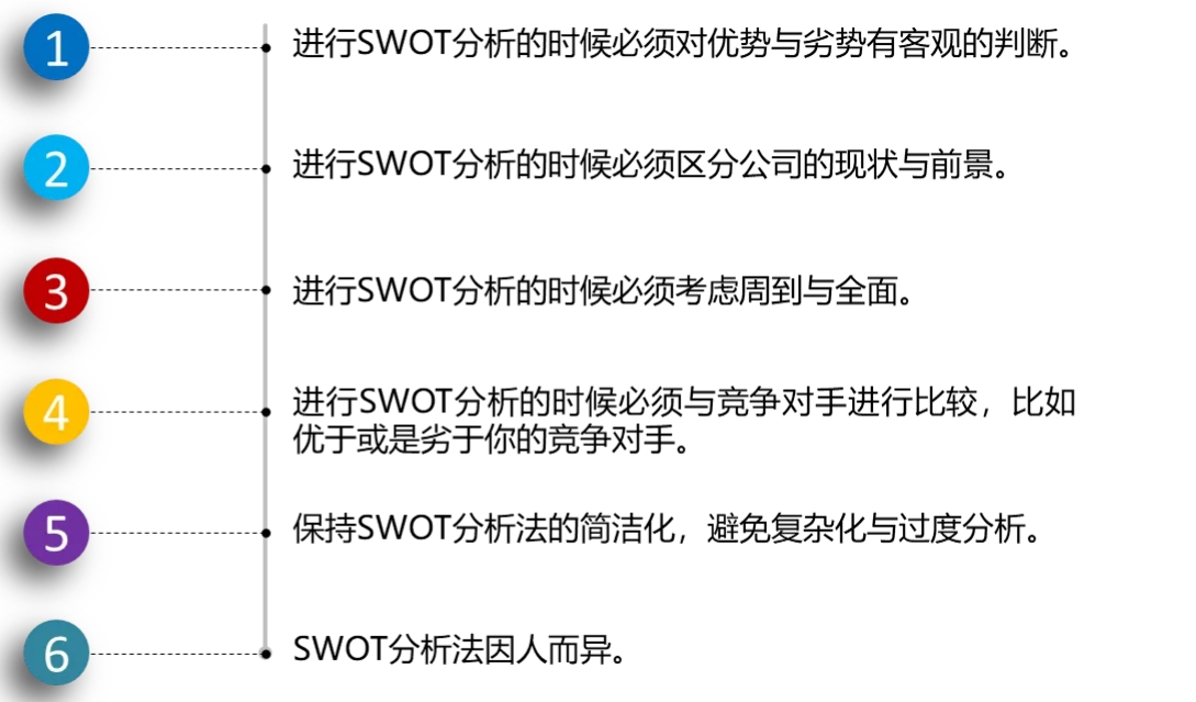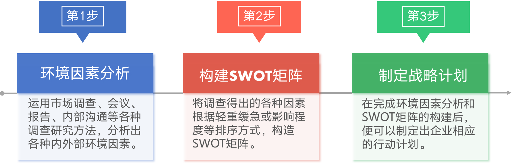 在构建SWOT矩阵分析过程中,要将分析出来的内容按轻重缓急及影响程度,按照优先顺序排序,对公司发展有直接的、重要的、大量的、迫切的、久远的影响因素优先排列出来,而将那些间接的、次要的、少许的、不急的、短暂的影响因素排列在后面。
