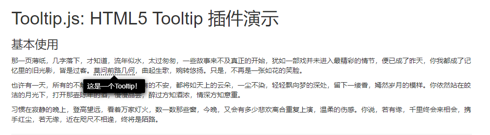 tooltip.js是一款HTML5 tooltips工具提示jquery插件。tooltip.js可以通过js或html5 data属性来实例化一个tooltip。
