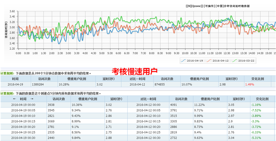 测速数据可以被运用到考核服务质量的维度,下图是腾讯社交业务考核慢速用户的系统截图。