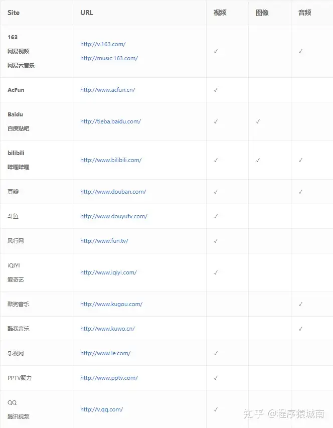 这款工具支持的站点特别多,几乎是万能的,比如说下面这些中文站点及其支持下载的媒体格式: