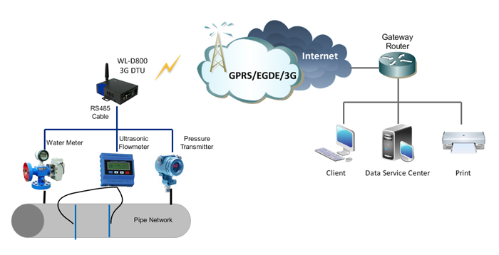 由于配电管网地处偏远甚至恶劣的环境,有线通信显然不现实。然而,为每个接入点配备星创易联DTU300-串口无线终端,可以无线传输数据,是替代光纤或有线线路的理想解决方案,DTU300-串口无线终端(串行端口到IP调制解调器)作为远程数据传输单元,将数据实时可靠地传输到数据服务器中心。此外,该应用还适用于油气管道系统。