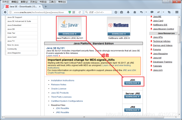 Windows64位操作系统下载 如jdk-8u121-windows-x64.exe