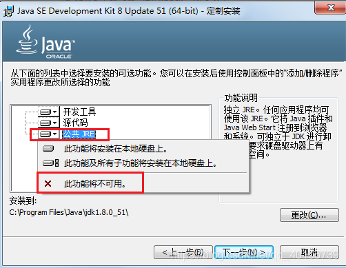 因为JDK中已经包含JRE,对于开发人员来说,可以不需要安装独立的JRE,如果想要取消安装JRE