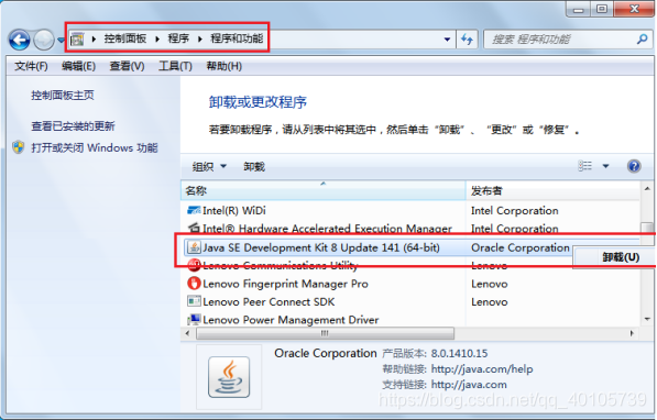 在控制面板或电脑管家卸载JDK