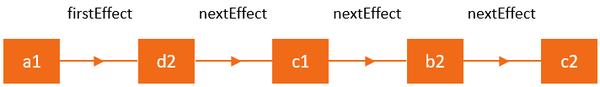 然后,有一个 effects list - 通过 nextEffect 指针链接的,finishedWork 树中节点的子集。请记住,effects list 是 render 阶段运行的结果。render 阶段的重点是确定需要插入,更新或删除哪些节点,以及哪些组件需要调用其生命周期方法,其最终生成了 effects list,也正是在提交阶段迭代的节点集。