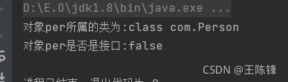 obj.isInterface()调用 isInterface()方法询问per是否为接口,运行结果为false,即不是接口。